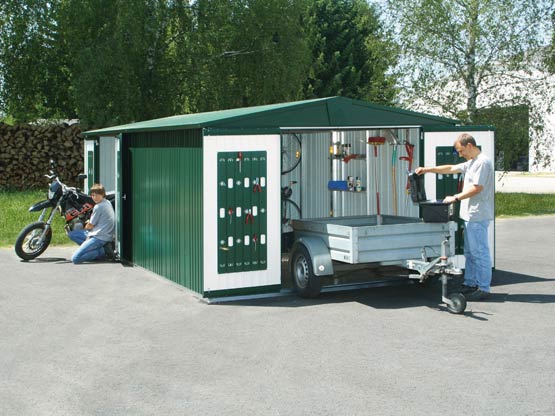 - Sistem de organizarea a spaţiului integrat (set de rafturi, suport pentru unelte etc.).