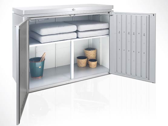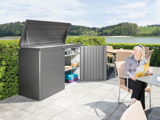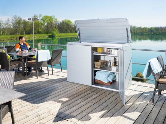 Cel mai elegant şi mai practic accesoriu de mobilier al terasei tale, fie că este vorba de spaţiul din apropierea casei, fie că este vorba de afacerea ta, HighBoard se integrează perfect în orice tip de decor. Acesta oferă soluţii practice pentru o largă diversitate de necesităţi în materie de echipamente şi instrumente utilizate în exterior, ce au nevoie de un adăpost impermeabil şi sigur pe terasă, în grădină sau în curte.