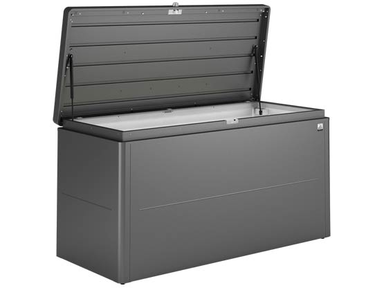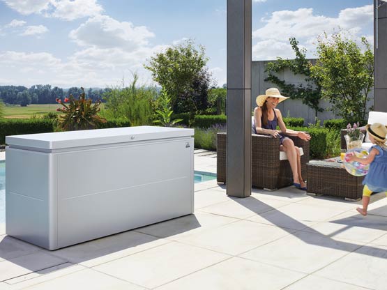 Cutia de depozitare LoungeBox® este soluţia perfectă de stocare a produselor, echipamentelor şi uneltelor de pe terasa ta. De la pernele pentru scaune şi alte accesorii pentru mobilierul terasei, la orice alt obiect de pe terasa ta, ce are nevoie de un loc sigur, impermeabil şi stabil pentru stocare.